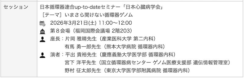 日本循環器連合up-to-dateセミナー「日本心臓病学会」